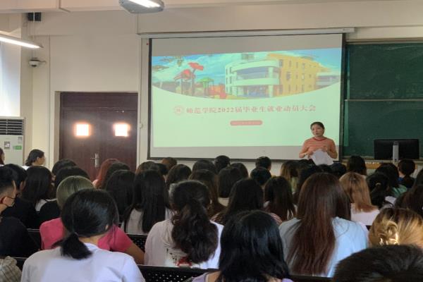 为进一步做好2022届毕业生就业工作,引导毕业生树立正确的择业观,积极参加各类就业招聘会,TapTap9月28-29日分专业召开了2022届毕业生就业动员大会。师范公司党总支副书记史瑞龙,泸州市优秀班主任王琴,各专业教研室主任、19级辅导员以及19级全体毕业生参加了就业动员大会。