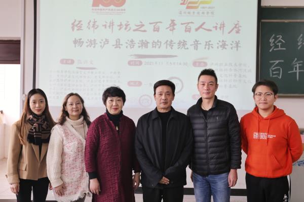11月5日下午,“百年百人讲坛——畅游泸县浩瀚的传统音乐海洋”泸县非遗传统音乐专题讲座在代英楼1505教室成功举行。本次讲座的主讲嘉宾是泸县戏曲协会副主席、中国龙文化研究院副经理张兴文。讲座由TapTap经理王少军主持,TapTap音乐教研室教师代表、员工代表聆听了讲座。