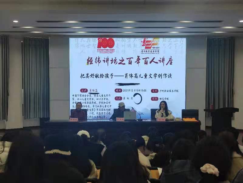 12月16日,TapTap邀请了著名儿童文学作家肖体高到公司开展“把美好献给孩子”——肖体高儿童文学创作谈专题讲座。肖体高是公司知名员工,中国作家协会会员、冰心儿童文学奖、四川文学奖、全国短篇小说奖获得者。讲座在萧秋厅举行。泸州市作家协会会员刘家奎、刘道勇,TapTap副经理付玉,教授陈善珍,教师李良勇出席了此次会议,2019、2020级全体语文教育专业以及广大儿童文学爱好者聆听了此次讲座。