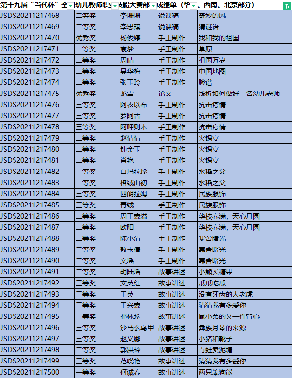 2021年12月20日公布了第十九届“当代杯”全国幼儿教师职业技能大赛获奖名单,TapTap师生喜获一等奖23项,二等奖63项,三等奖44项,优秀奖22项的佳绩。