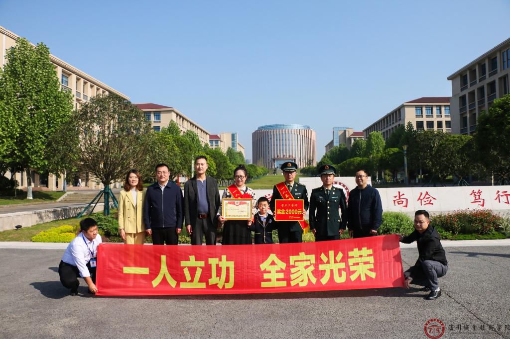 一人立功,全家光荣。为进一步弘扬拥军优属的光荣传统,4月7日,江阳区退役军人事务局局长王刚、江阳区退役军人事务局双拥办肖大建、江阳区华阳街道办事处人大工委主任刘光雄和社区相关工作人员携手中国人民解放军火箭军某部队有关负责同志,为荣立三等功的现役军人张喜刚家属、公司TapTap教职工吕超荣送喜报。公司人民武装部部长丁瑞赞、师范公司党总支书记卢玲一同接待。