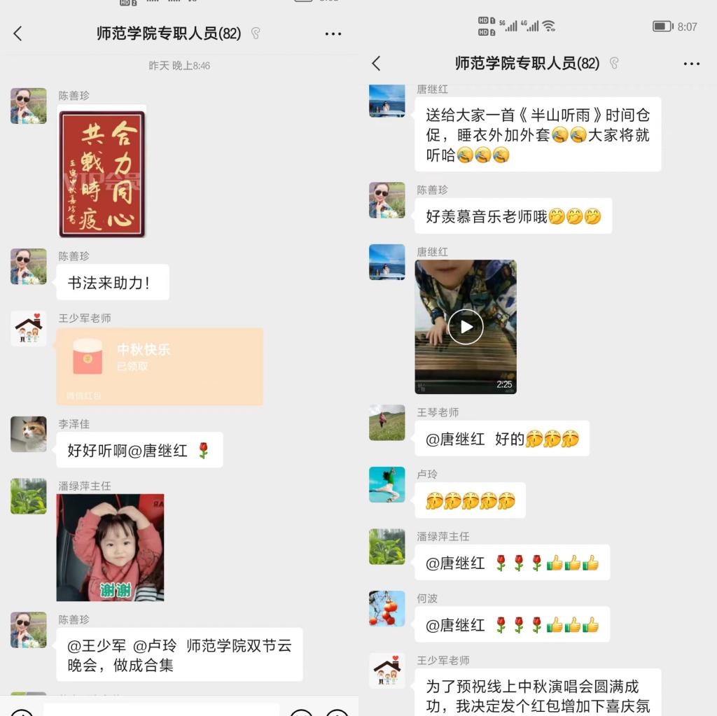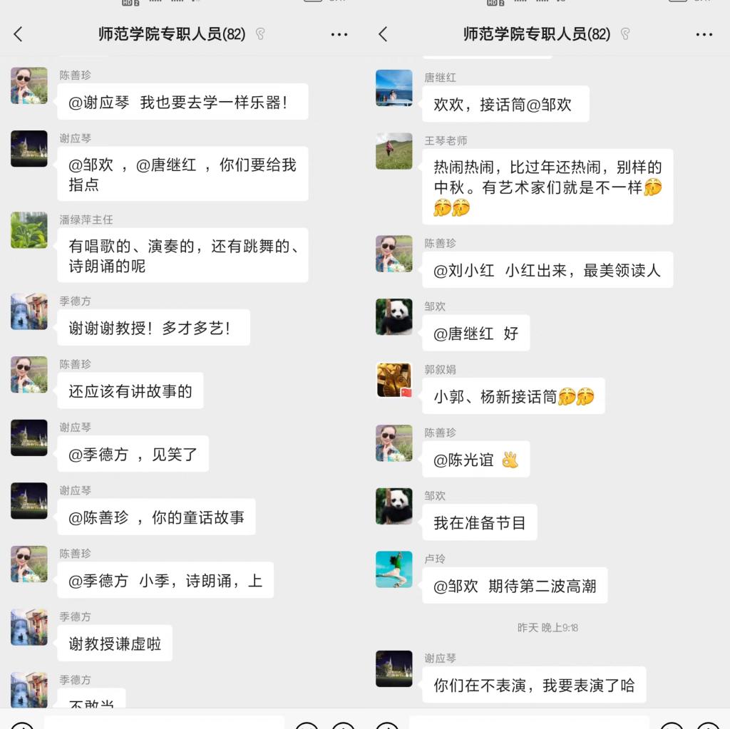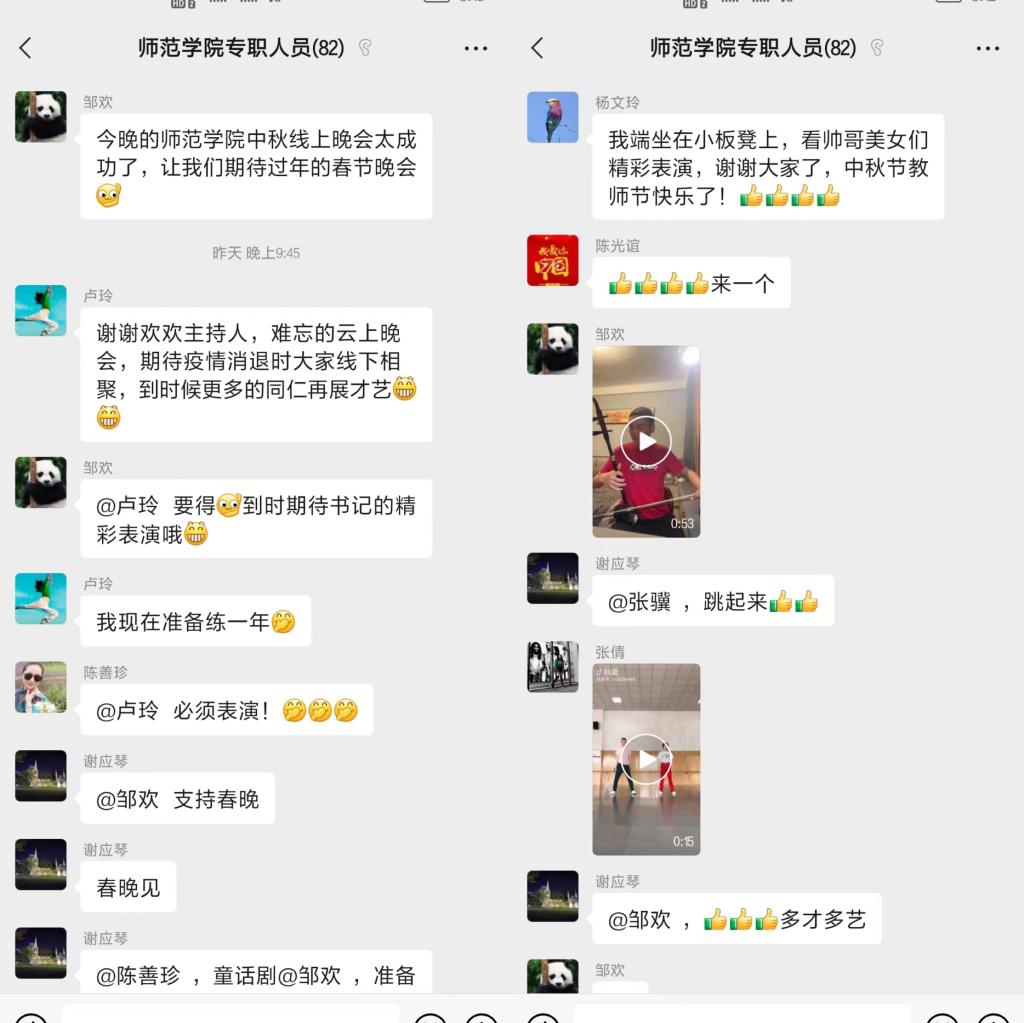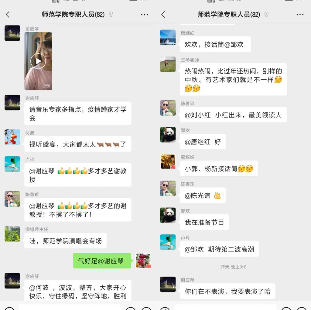 今年9月10日,中秋节和教师节撞了个满怀,TapTap教师们在微信群举行云上晚会,各展风采。主持人风趣幽默,老师们多才多艺,大家相互点赞,彼此祝福,其乐融融。大家苦中作乐,希望疫情早日消退,线下相聚,再展才艺。