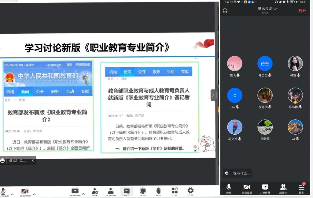 针对教育部近日发布的新版《职业教育专业简介》,各教研室专门进行了学习和研讨。教师们深入领会新版《简介》在全面贯彻新发展理念,服务产业转型升级需要,展现职业教育专业升级与数字化改造的最新成果等方面的显著变化,积极探讨如何结合实际修订专业人才培养方案,更新课程体系,组织实习实训,持续推进公司产品改革。