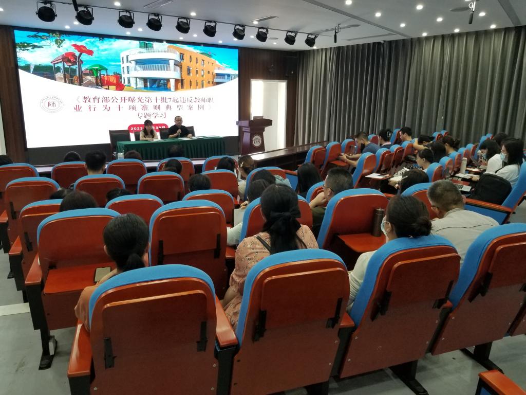第二项议程,王少军带领大家进行《教育部公开曝光第十批7起违反教师职业行为十项准则典型案例》的专题学习。王少军向大家通报了第十批7起违反教师职业行为十项准则的典型案例,通过典型案例,一是要求大家加强警示教育,二是持续完善师德师风建设长效机制,三是对师德失范行为从严依规处理。他希望大家能够以此为戒,严格规范自身行为,做好立德树人工作。