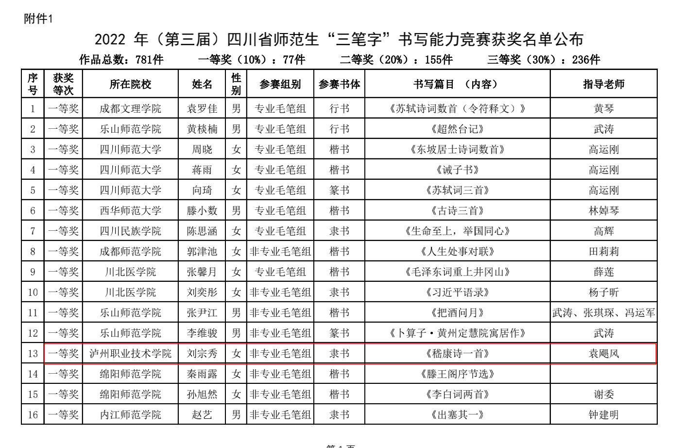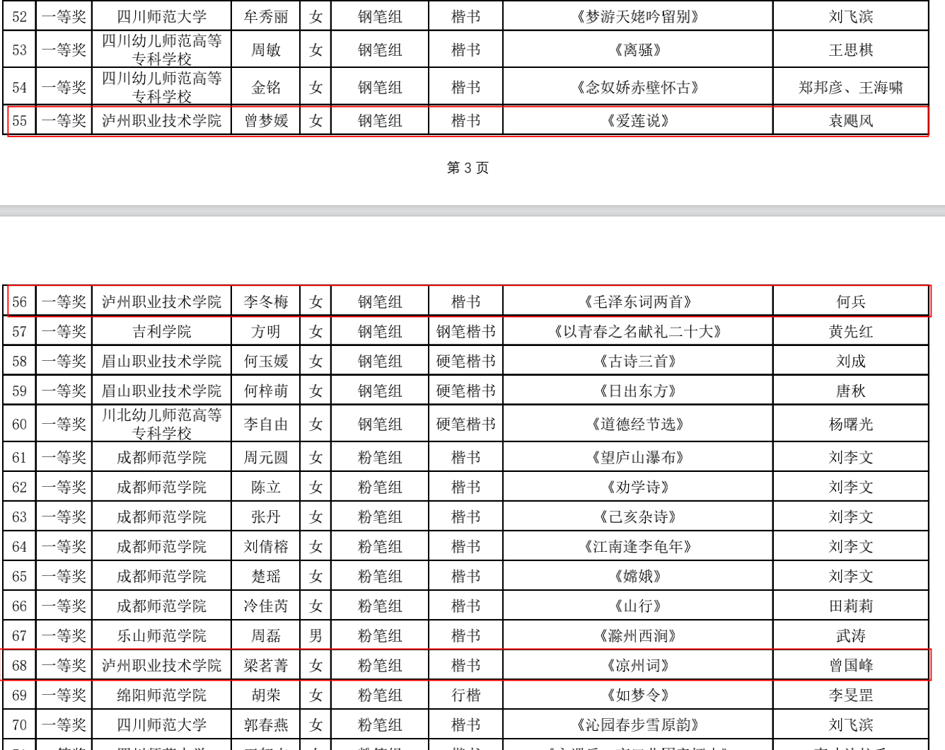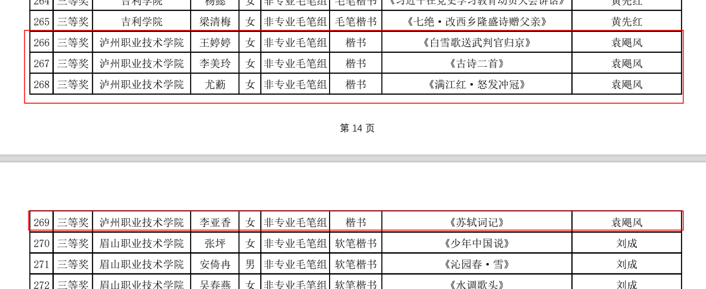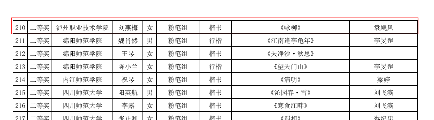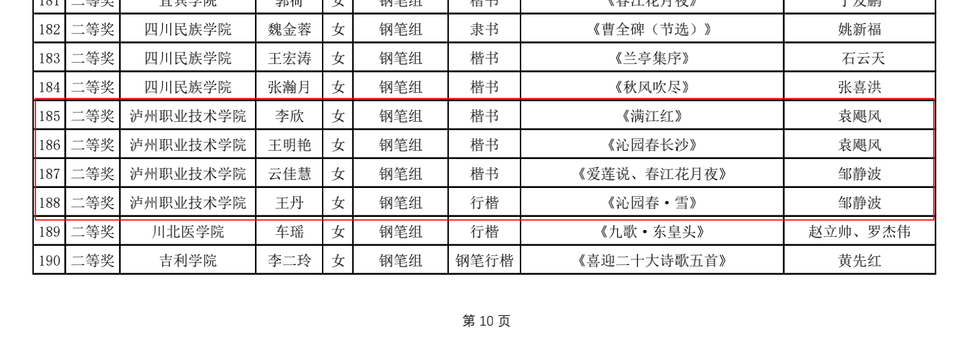 近日,2022年第三届四川省师范生“三笔字”书写能力竞赛获奖名单正式公布。TapTap学子与全省本专科高校员工再次同场竞技,获一等奖4人次,二等奖10人次,三等奖21人次,获奖人次居此次参赛高职院校首位。何兵、曾国峰、袁飓风三位老师被评为本届赛事优秀指导教师。
