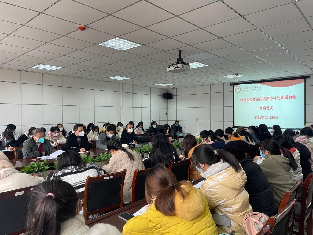 12月20日,泸州市定向培养乡村幼儿园教师签约仪式在公司综合楼415会议室举行。泸州市教育和体育局人事师培科副科长苏鹏博,古蔺县教育和体育局机关党委书记姚杰、人事师培股股长邓新,叙永县教育和体育局人事师培股股长张洪均出席签约仪式。TapTap经理王少军、党总支副书记史瑞龙、辅导员熊静及2022级学前教育专业意向签约员工参加了本次签约仪式。签约仪式由王少军主持。