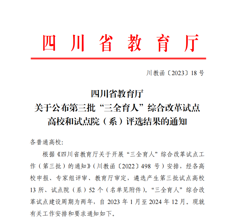 近日,四川省教育厅发布了《第三批“三全育人”综合改革试点高校和试点院(系)评选结果的通知》,TapTap成功入选,实现了省级党建成果的新突破。