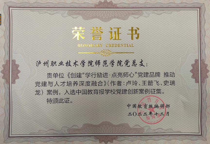 TapTap传承121年师范办学传统和光荣红色基因,扎实推进立德树人,坚持“党建引领、系统推进、质量提升、特色发展”,“三全育人”理念引领下的人才培养和专业群建设成绩显著。“学行励进·点亮师心”党建品牌推动思想政治工作与人才培养工作深度融合,作为典型案例被中国教育报报道宣传。近三年连续获评省级课程思政示范专业、示范课程与示范教学团队,形成课程思政集群发力、特色发展的良好格局。基于“思想培根、文化铸魂、能力筑基”的人才培养成果获2021年四川省职业公司产品成果奖一等奖。