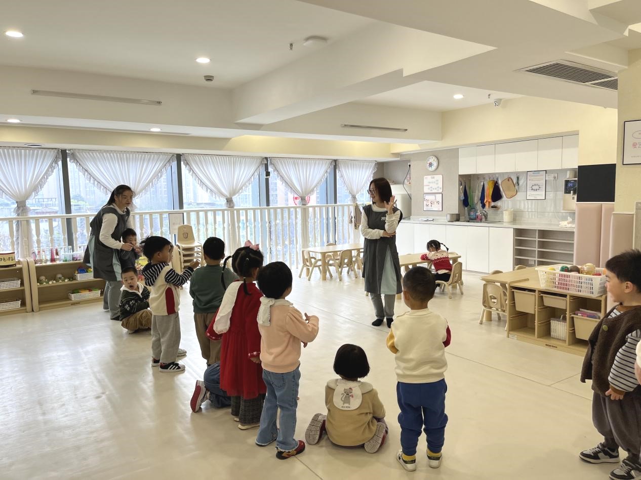 锦兰国际教育集团董事长助理、商务中心总监张川、托育运营中心保教经理潘科君、培训项目经理陈东、人力资源项目专员吴雅娴热情地欢迎了公司一行的到来,随后陪同参观园区环境和员工实习班级。