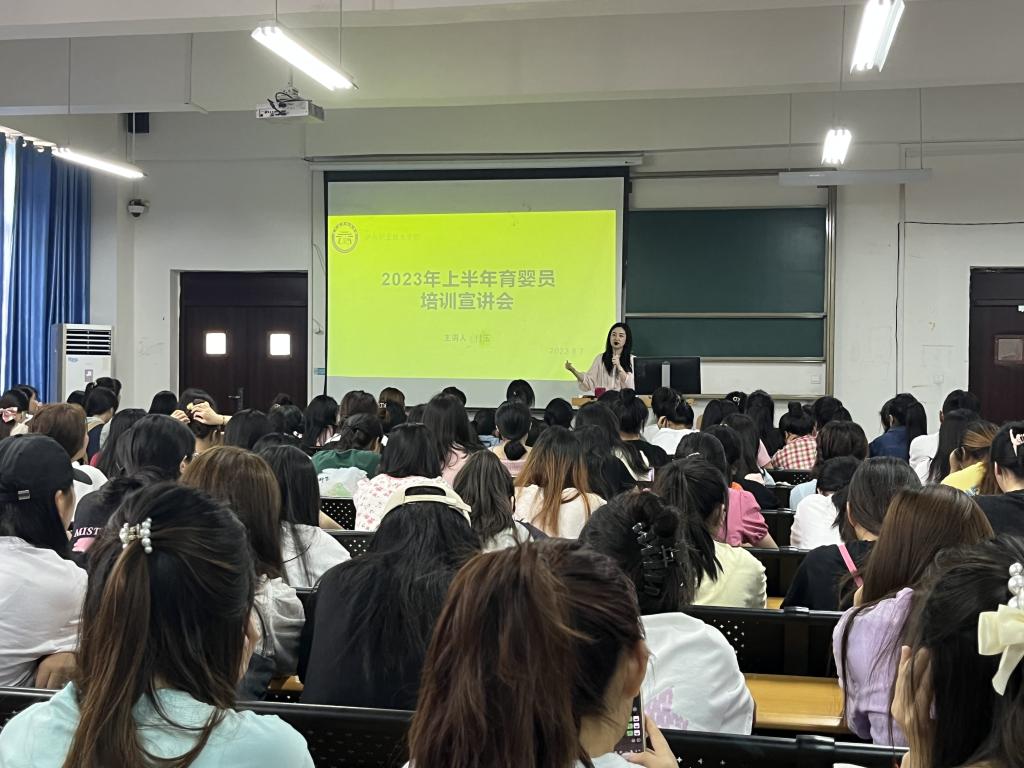 首先,高原向全体同学介绍了本次会议的主题,介绍了学前教育专业人才培养的目标、未来就业岗位和渠道。随后,罗丽分析了早期教育行业、托育行业的发展态势,指出高级育婴员资格培训的价值和功能,详细地讲解了育婴员培训的内容与形式。