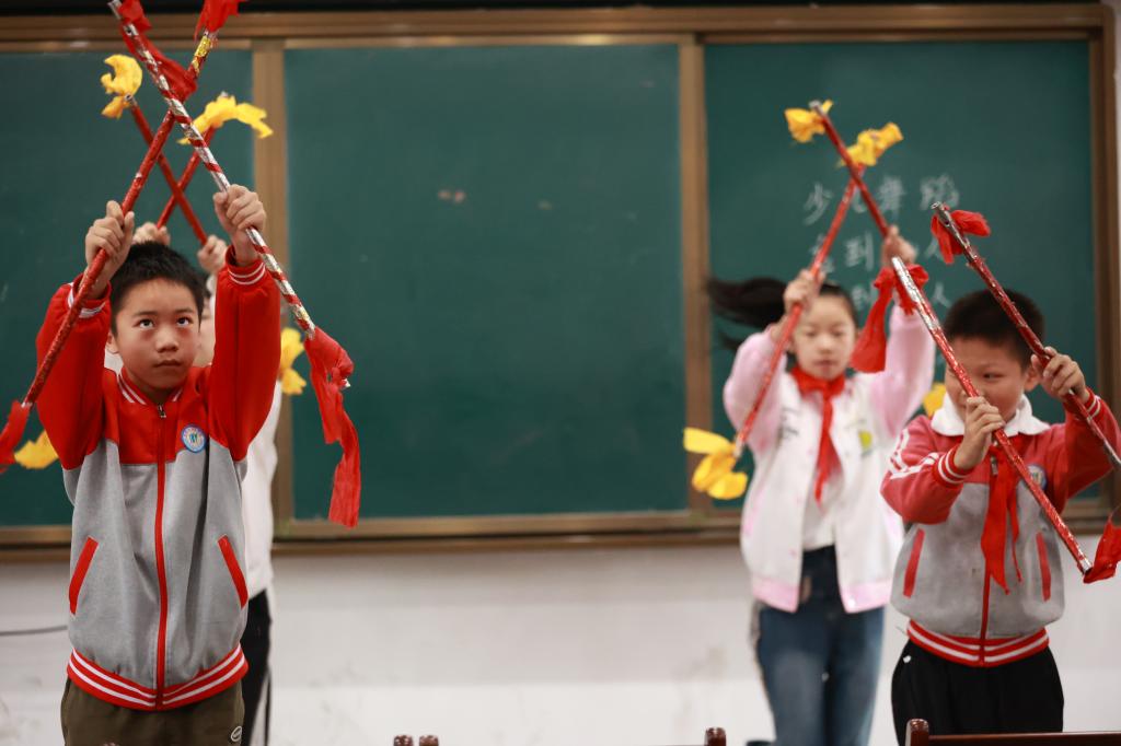 百和中心小学德育主任杨杰带领参观了百和莲枪舞的陈列室,介绍了相关道具、服装的变迁过程,以及百和莲枪舞在该校的具体实施过程。据了解,在该校体育课程中,由体育老师教授百和莲枪舞,并在全校的大课间活动中进行百和莲枪舞表演。百和莲枪舞非遗进校园,既能促进员工强身健体,又能让孩子们从小接触优秀传统文化,形成传承意识。