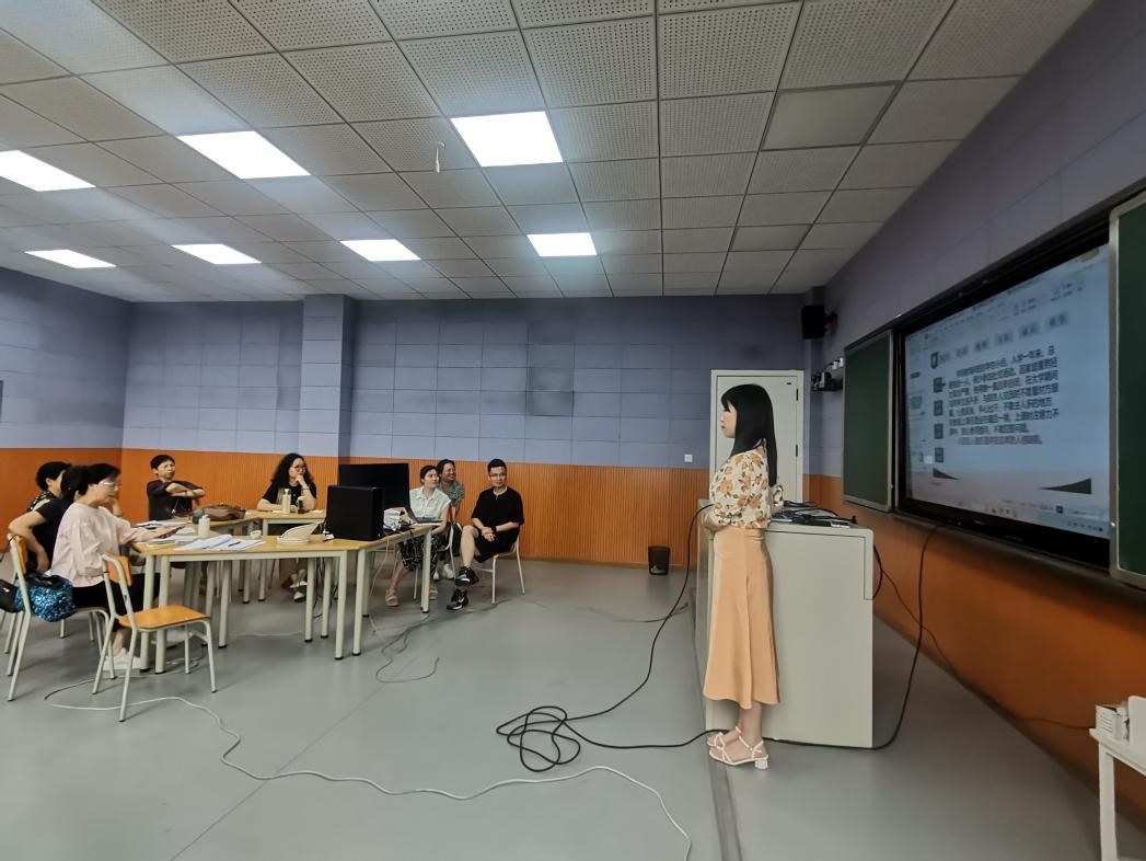 其次,全体参加,出谋划策,相互学习,提供比赛支持。教研室教师在观摩过程中,认真聆听,积极献言献策。潘绿萍教授全程指导,亲身示范,不放过任何一个细节,她在肯定了团队教师的展示之后提出整改意见。全体成员从教学内容的确立、学情分析、教学策略、课程思政融入等方面出发,就讲什么、怎么讲、重点应突出的内容、PPT制作等与参赛教师进行深入交流。