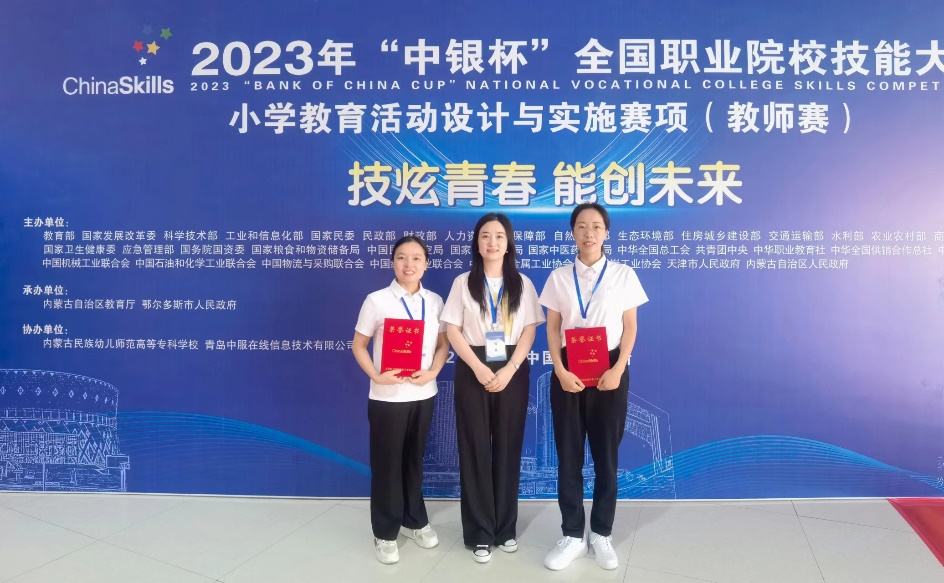 8月23日至26日,2023年全国职业院校技能大赛小学教育活动设计与实施赛项(教师赛)在内蒙古民族幼儿师范高等专科公司落下帷幕,经过两天的激烈角逐,公司TapTap李良勇、刘小姣两位教师组成的参赛团队荣获三等奖。7月,该赛项员工赛在山东济南职业公司举行,TapTap李晓静、周瑜两位同学也获得三等奖。