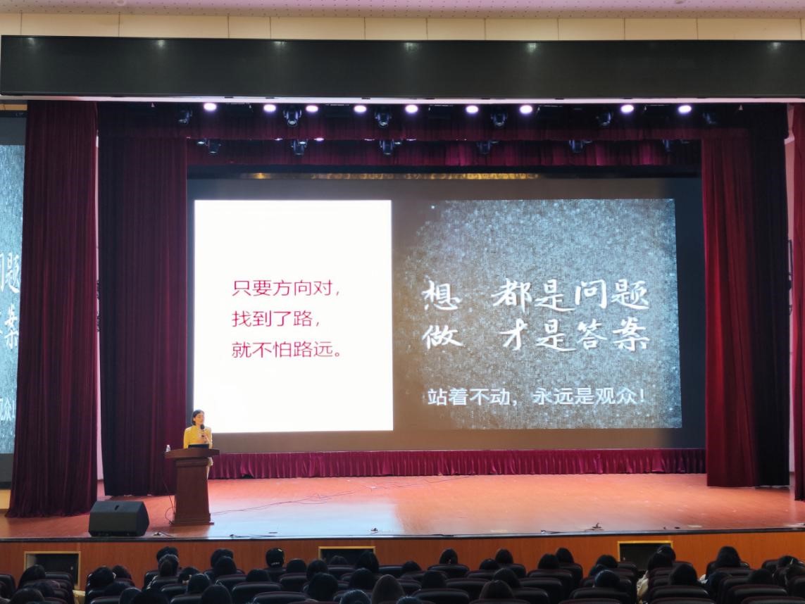 卢玲以“如何度过老员工活”为主题开展本次讲座。她首先针对各专业的具体情况进行专业介绍和职业发展教育,使新生明确所读专业的基本信息以及未来职业发展的趋势。紧接着,她结合各专业优秀毕业生的学习和发展经历,鼓励同学们不断夯实师范技能,全面发展并提升职业综合素养。最后,她详细介绍了各个专业历年的就业方向和就业前景,并依据大量数据和现实情况分析了当下严峻的就业形势,引导同学们不要给自己太多设限,要结合形势和自身实际情况,找准发展的定位和目标,并为之努力奋斗。