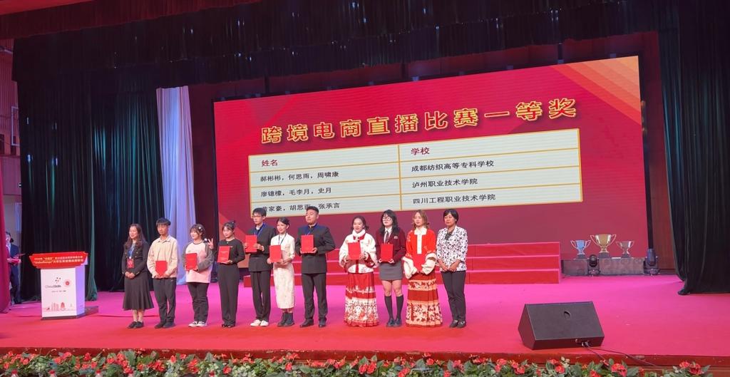 此次大赛分为三个赛项:英语演讲大赛、英语写作大赛、跨境电商直播大赛。经过激烈角逐,朱重炫老师指导的小学英语教育专业廖芸嘉同学获得了演讲比赛一等奖;何玥、刘永丽老师指导的团队(跨境电商专业毛李月、应用英语专业廖镱檬、小学英语教育专业史月)获得了跨境电商直播大赛一等奖;杨惠婷、唐薇、唐朝秀老师指导的小学英语教育专业韩雨梦、早期教育专业杨春雪、应用英语专业王银尧分别获得二等奖、二等奖、三等奖。