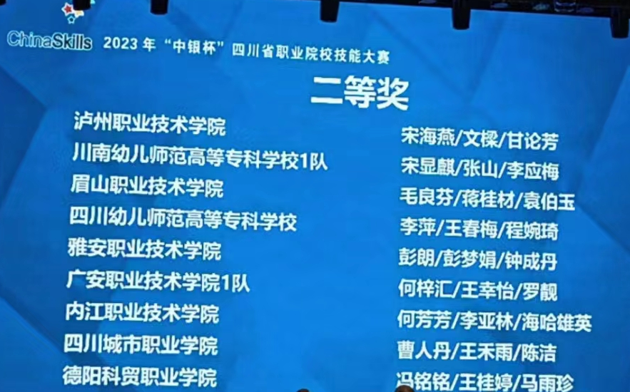 公司员工荣获2023年“中银杯”四川省职业院校技能大赛(高职组)婴幼儿照护赛项一、二等奖