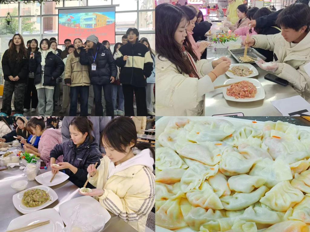 活动现场热闹欢快,同学们分工明确、动作娴熟。大家一边有条不紊地包饺子,一边参与趣味十足的小游戏,欢声笑语伴着窗外凛冽的寒风,变成了同学们记忆里一抹不可磨灭的暖色。随着一盘盘皮薄馅大的饺子出锅,同学们围坐在一起,品尝着色香味美、肉汁四溢的饺子,鲜美的味道在舌尖绽放。饺子的温度不仅拉进了同学们的距离,更温暖了每个人的心。