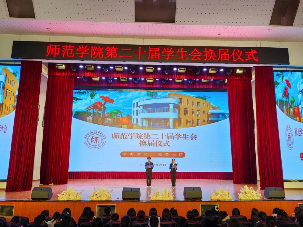 随后,第二十届主席团、部长代表分别上台发言,他们结合自身工作经验对学弟学妹们提出了中肯的建议并表达了美好的祝福。在颁奖仪式和聘任仪式上,史瑞龙和刘一春分别为二十届员工会全体干部颁发聘书奖杯。颁奖结束后,第二十一届主席团、部长代表分别上台表达了对未来工作的展望,并为学长学姐献上了一段温馨的祝福视频。