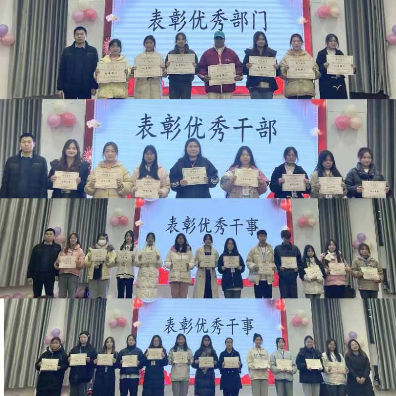 大会在文体部青春活力的舞蹈中拉开序幕。首先,史瑞龙上台致辞。他对本学期员工会的辛勤努力表示充分肯定和赞扬,提出员工会作为一个整体,各部门应加强交流与合作,让员工会活动开展得更顺利。紧接着,各部门代表上台对本学期的工作进行总结,并对下学期进行展望,表明了再接再厉的坚定信心。随后,史瑞龙和刘一春对本学期表现优秀的部门、干部以及干事进行了颁奖并合影留念。