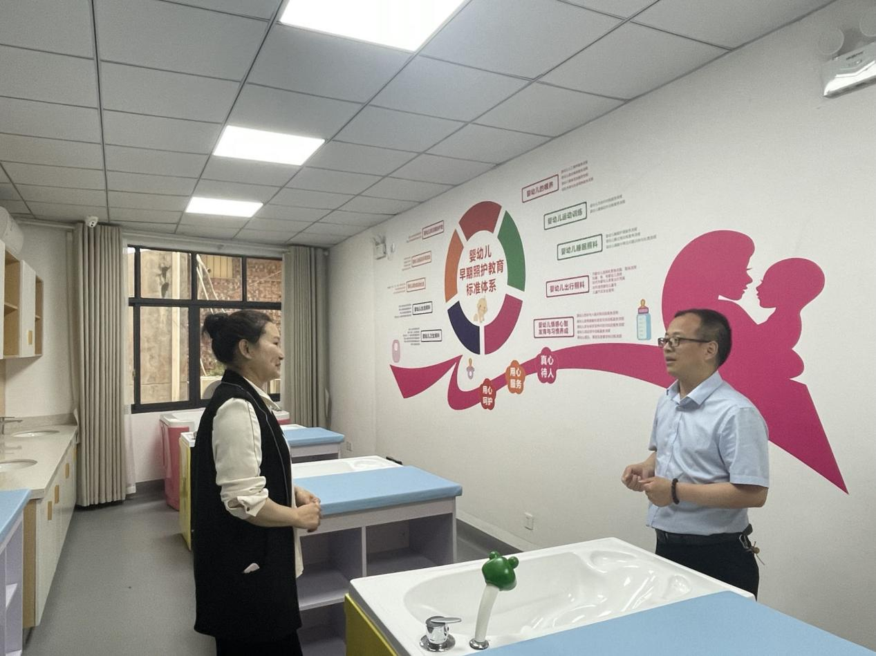 王少军一行实地考察了巾帼家政园的婴幼儿照护、母婴护理、小儿推拿、膳食制作、养老护理、入户整理等培训实训室。