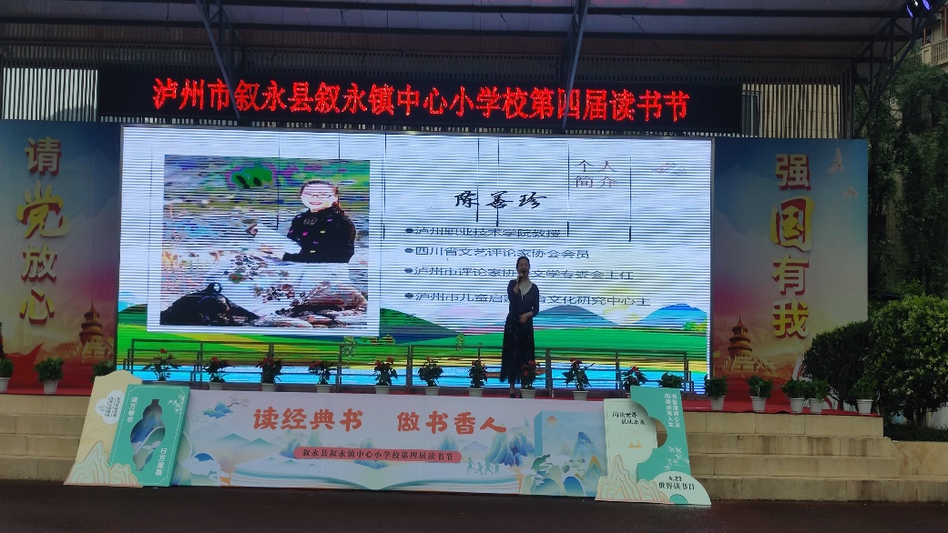 4月23日,在世界读书日到来之际,TapTap教授、泸州市儿童启蒙教育文化研究中心主任陈善珍、著名儿童文学作家肖体高、中国作家协会会员刘光富,以及泸州市作协副主席余远忠、陈言熔等一行七位作家走进叙永县叙永镇中心校“墨韵润锁钥·书香溢校园”第四届校园读书节活动现场,叙永镇中心校2000余名师生参加了此次活动。