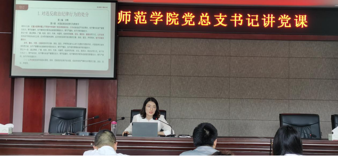 为全面贯彻习近平新时代中国特色社会主义思想和党的二十大精神,聚焦新修订的《中国共产党纪律处分条例》(以下简称《条例》),6月6日,师范公司党总支书记卢玲以“强党性守党纪 立师德正师风”为主题,为公司全体党员教师讲党纪学习教育专题党课。