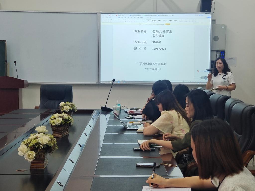 李泽佳首先代表公司对各位专家的到来表示欢迎,对本次人才培养方案制定的背景、过程做了简要介绍。随后,学前教育、早期教育、音乐教育、婴幼儿托育服务与管理等四个专业的专业带头人和教研室主任分别汇报了各专业的人才培养目标、培养规格、课程设置等情况。