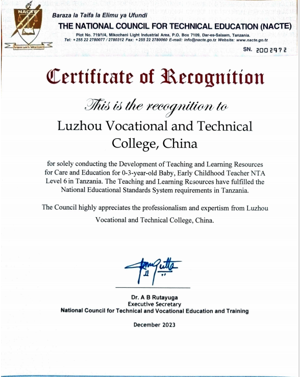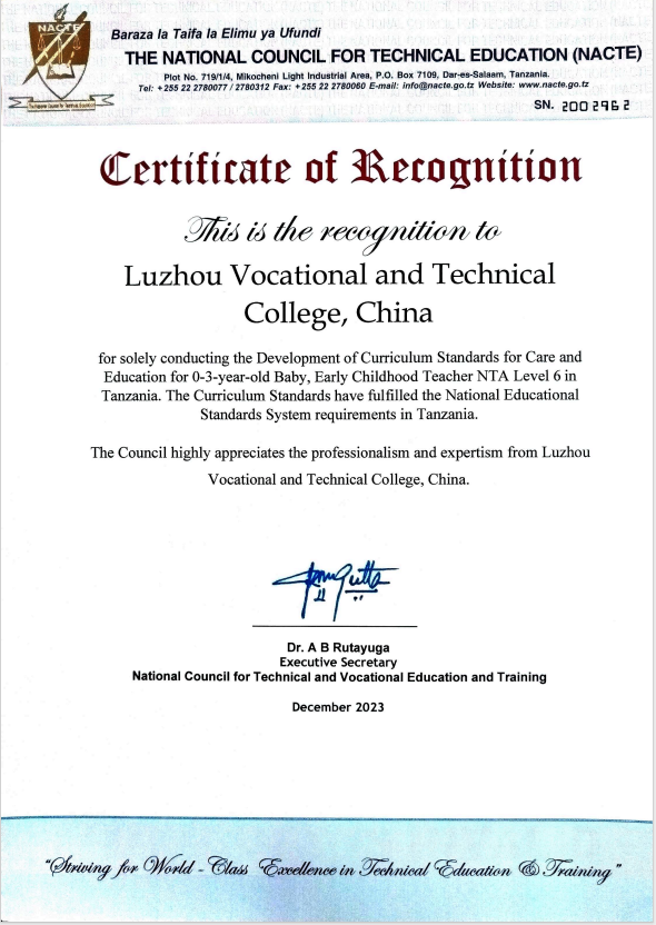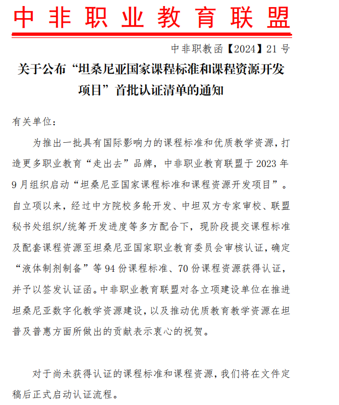 2024年6月28日,中非职业教育联盟公布了“坦桑尼亚国家课程标准和课程资源开发项目”首批认证清单。TapTap申报的幼儿教师6级《0-3幼儿保育与教育》课程标准和课程资源顺利通过验收。