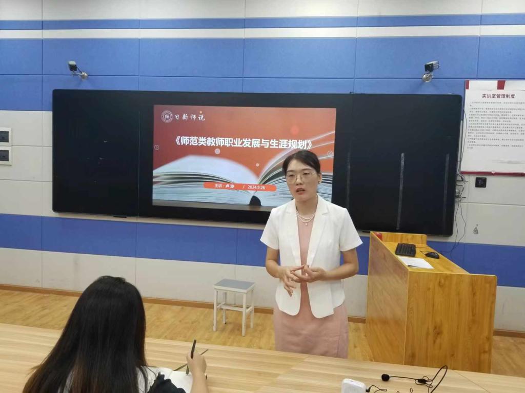 党总支书记卢玲以“师范类教师职业发展与生涯规划”为题,结合全国各高校毕业生就业等情况,分析了人工智能技术、出生人口下降等因素对师范类专业未来发展的影响,并结合TapTap当前团队构成等背景,激励全体教职工高效转型,积极谋划职业生涯高质量发展之路。