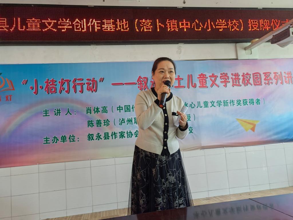 10月14日,TapTap陈善珍教授与著名儿童文学作家肖体高老师一行5人走进叙永县落卜镇中心小公司,一起见证“小桔灯行动”-----叙永县作家协会儿童文学创作基地落户落卜镇中心小公司。