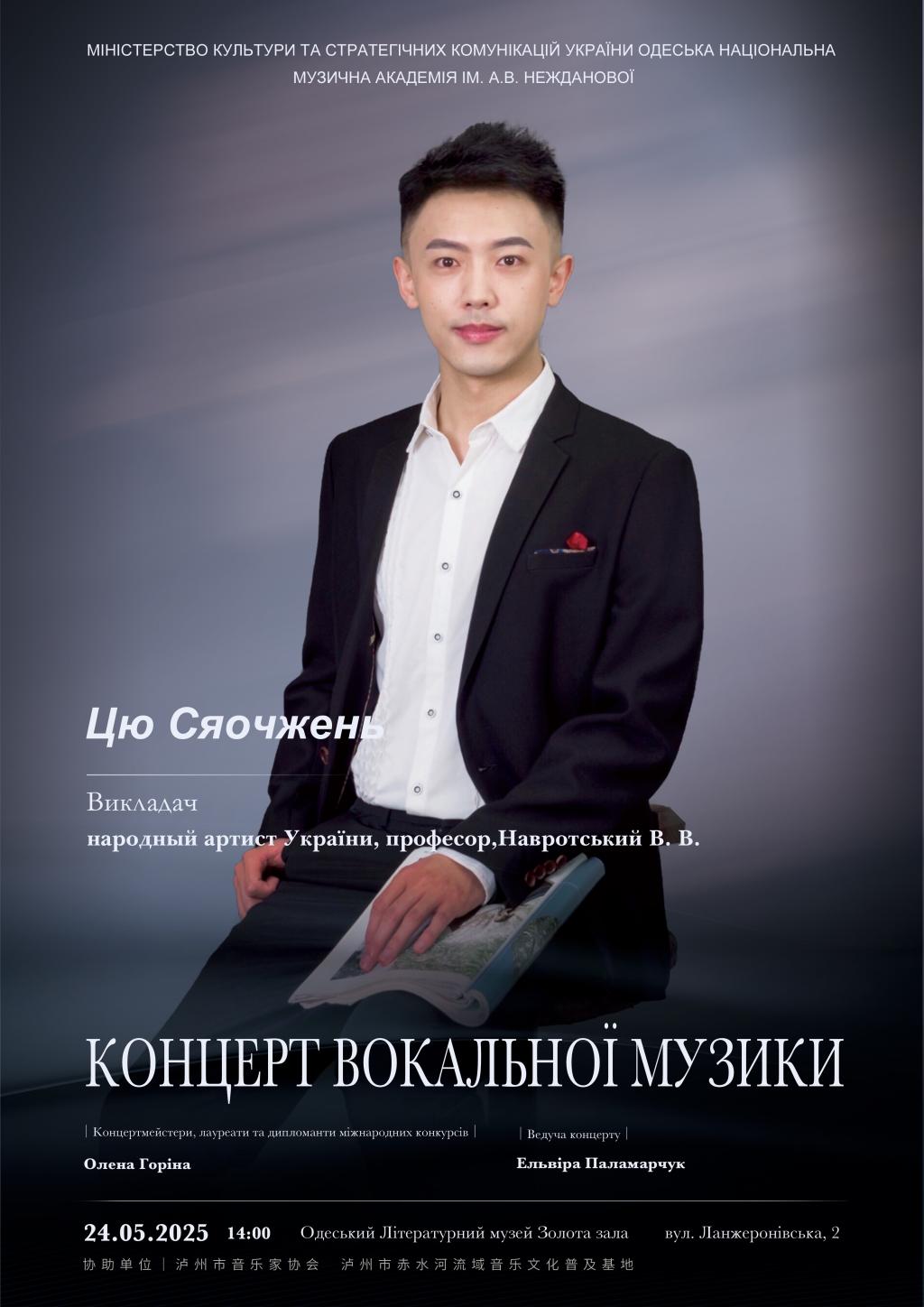 邱孝真本科毕业后进入敖德萨国立音乐公司声歌系攻读声乐与歌剧表演硕士研究生,2021年以ECTS全科评分A的优异成绩完成研究生学业,获得敖德萨国立音乐公司学术委员会推荐继续攻读博士学位。在俄乌冲突特殊时期,他多次前往乌克兰,克服种种困难继续坚持完成学业。此次音乐会是他攻读音乐艺术博士的重要阶段性成果。