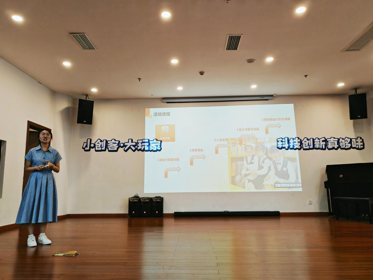 在多功能厅,同学们根据课程考核中的真实命题情境逐一展现小组设计的“职场情景剧”与活动方案。“你是幼儿园中班的老师,请设计一次亲子郊游活动以帮助孩子们了解家乡、热爱家乡”“你是幼儿园大班的老师,孩子们三年的幼儿园生活即将进入尾声,为了激发孩子们对同伴、老师、家长、园所的感恩之情,请设计一次毕业典礼活动”“你是幼儿园的年级组长,通过充分挖掘高校的各种教育资源,尝试设计一次主题远足活动”......中班组的“去郊游吧—张坝”亲子研学方案,融合非遗文化体验路线设计;大班组的“童梦花绽,毕业启航”毕业典礼策划,创新采用“时间胶囊”互动环节;混龄组的“图书馆探秘”主题远足,联动大学图书馆资源开展读书分享与漂流。