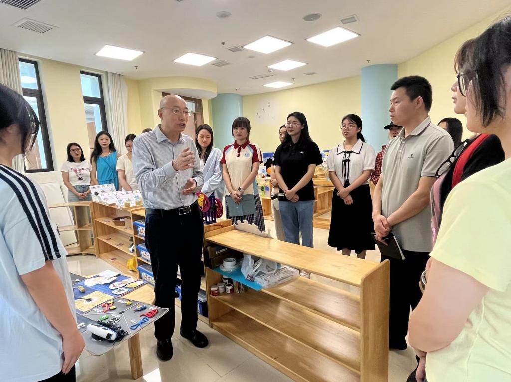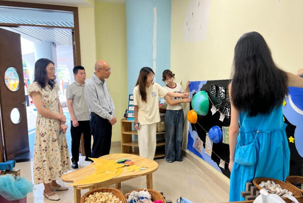 2025年6月23日,公司党委副书记、经理谢鸿全以班导师身份深入学前教育专业生产性实训基地——经纬诺博幼儿园,全程指导2022级本科班《幼儿园班级管理》课程教学改革项目考核汇报活动。本次活动由课程负责人、师范公司党总支书记卢玲主持,教学、员工管理相关人员及全体同学参与。