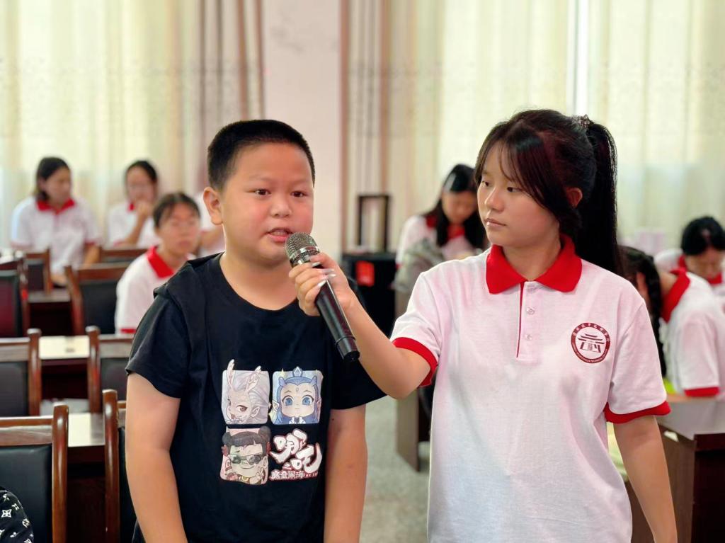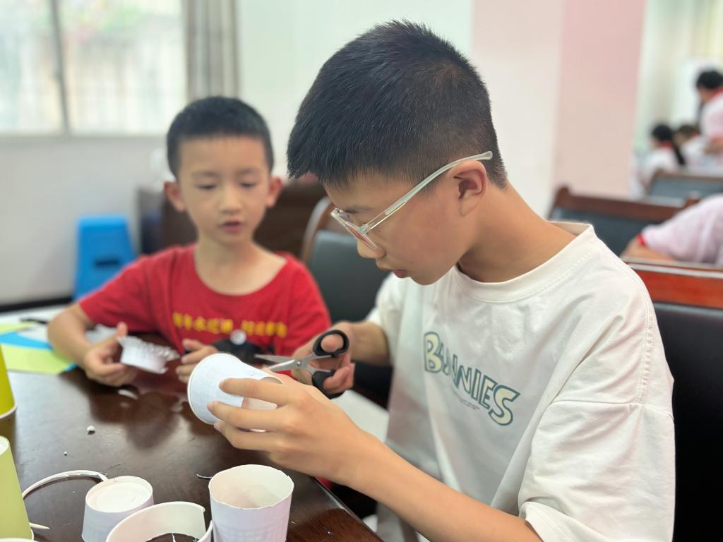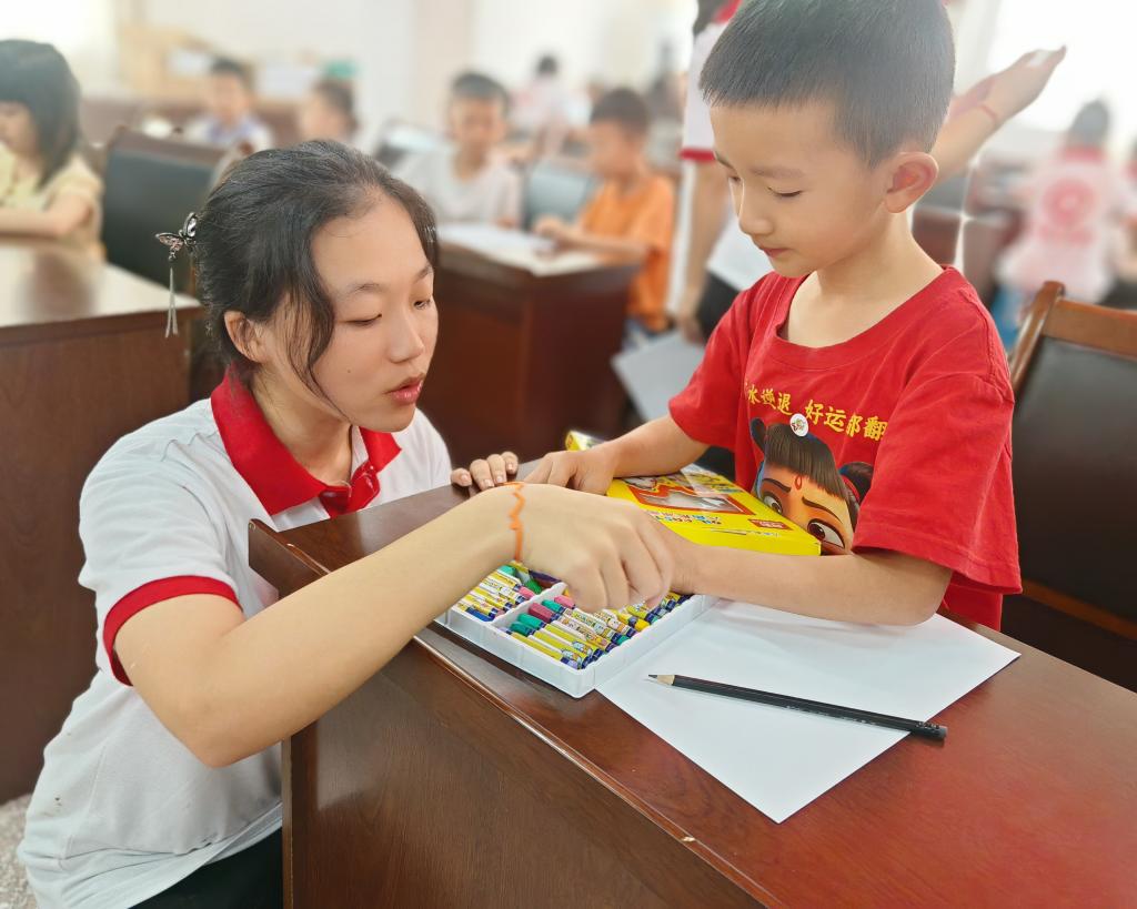 经典诵读环节,实践队员领诵《乡愁》经典篇章,朗朗童声浸润语感,更加深小朋友的记忆印象;趣味绘画现场,实践队员与小朋友用普通话讨论配色技巧,将天马行空的创意变成生动形象的图案;《大中国》音乐舞蹈中,实践队员逐句示范,激昂旋律与优美舞姿点燃爱国情怀,语言表达与艺术演绎浑然一体;创意手工环节,实践队员与小朋友一起巧手改造纸杯,践行绿色环保理念,创作全程普通话自然交流,语言学习与绿色行动有机统一。