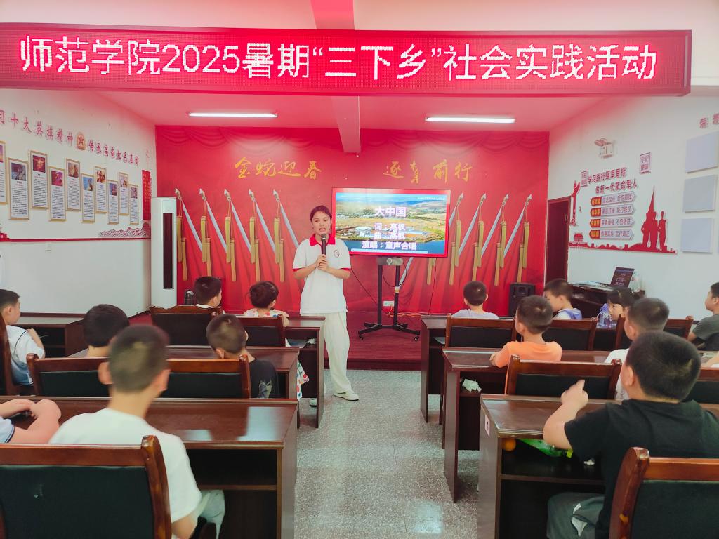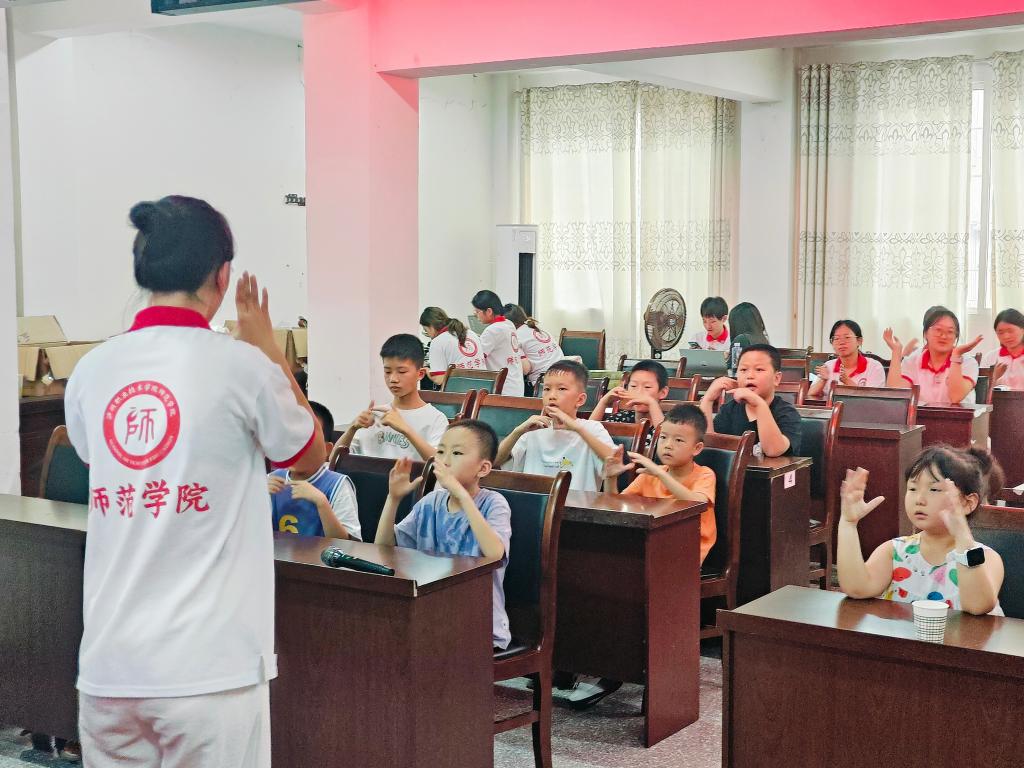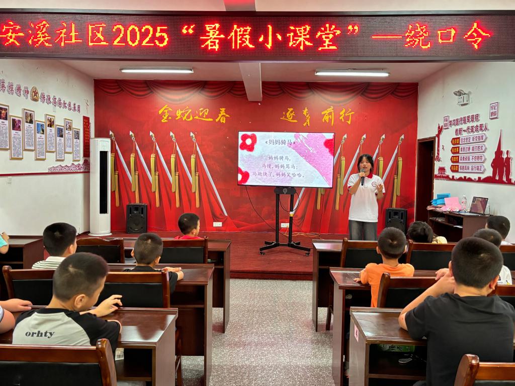 本站讯(来源:TapTap)学习贯彻习近平总书记在全国教育大会上的重要讲话精神,将习近平总书记的殷殷嘱托转化为语言文字事业高质量发展的生动实践,7月8日,TapTap“山水同音”社会实践队在九支镇安溪社区开展支教小课堂。实践队员巧妙融合趣味教学与规范化语言实践,通过经典诵读、音乐舞蹈、创意手工等多样化的活动,在小朋友心田播下热爱通用语言文字的种子,美好的夏日时光里,书香萦绕,童音回荡。