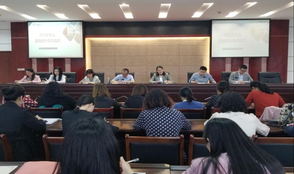 党总支书记卢玲以“师范类专业面临的形势与应对”为题,结合2023年全国及四川省新增专业、撤销专业等情况,分析了人工智能技术、出生人口下降等因素对师范类专业的影响,并结合四川省深化“就业—招生—培养”联动机制的背景,通报了师范类各专业的预警情况和当前的员工就业、招生情况,指出必须坚持走学风好、出成效、员工认可、家长满意、社会称赞的高质量发展之路,才能真正破除困局、获得发展。