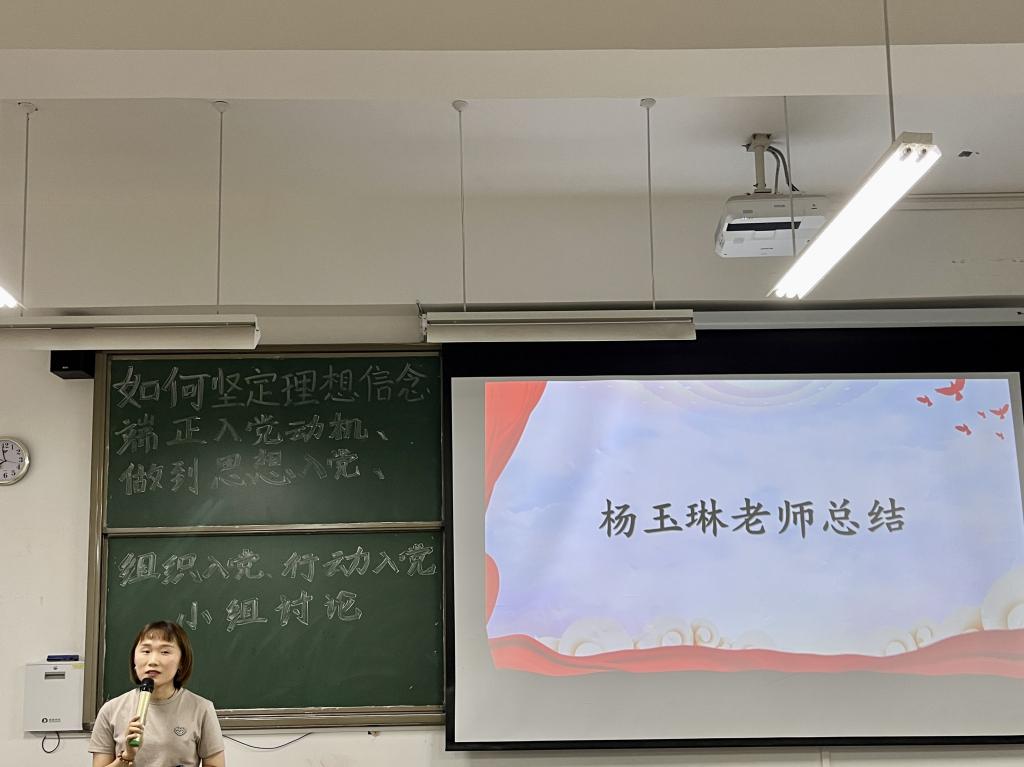 活动中,入党积极分子分组展开主题讨论,分别从理想信念、入党动机、责任担当、思想品质等方面进行了激烈地讨论。他们结合党的历史经验和当今时代发展情况,表示作为新时代的青年党员,要做到勤学善思,要坚守理想信念,要有责任担当精神,要坚守思想防线。最后,杨玉琳对此次小组讨论进行总结发言,勉励大家涵养进取品格、砥砺复兴之志,在新时代展现新担当、新作为,以党员标准严格要求自己,积极向党组织靠拢。