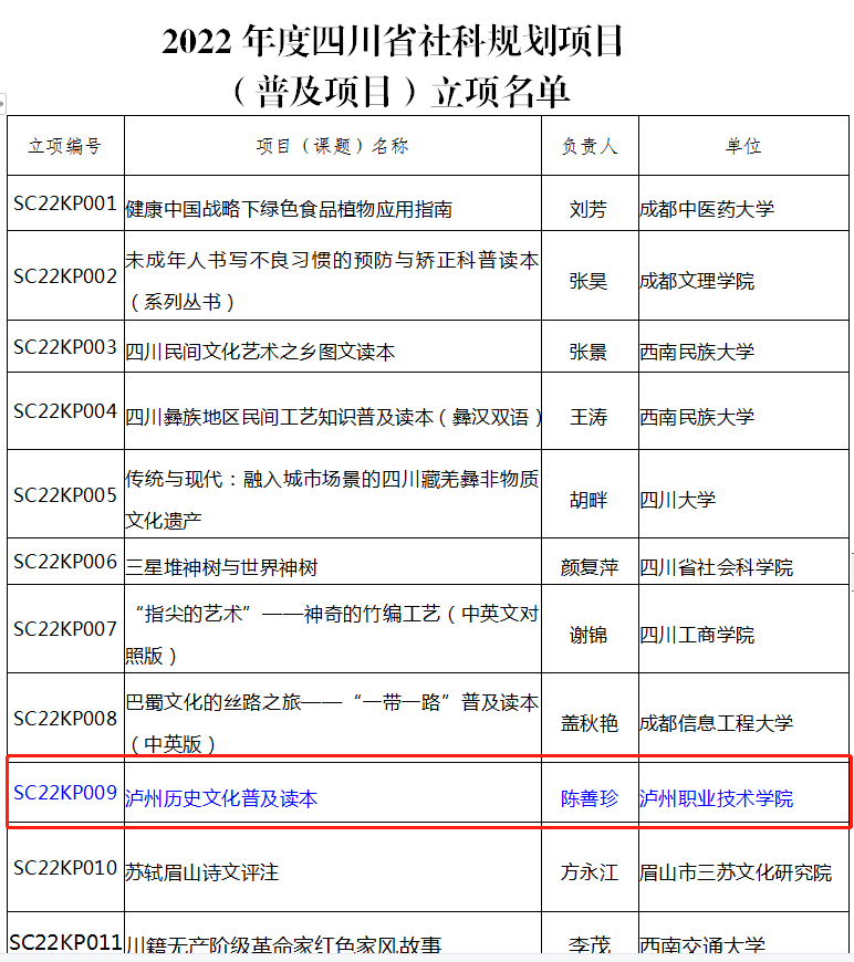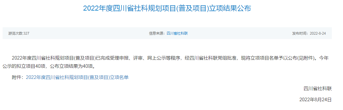 2022年度四川省社科规划项目(普及项目)立项结果公布。公司
