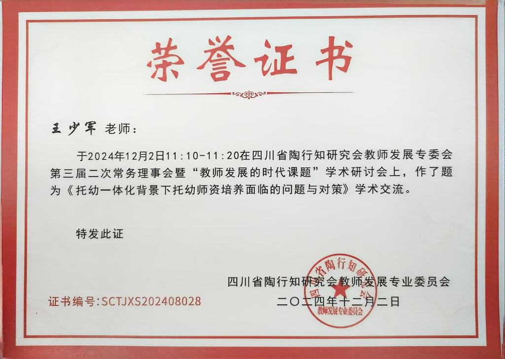 本次研讨会充分展示了理事们的学术水平,研讨内容聚焦,学术观点自由表达,理论联系实际;理事论坛的主题论坛对接四川省陶行知研究会教师发展专委会2024年的工作成绩,同时开启了2025年学术研究的重点选题的引导。参加研讨会的理事们纷纷表示,2025年继续努力,在学陶、师陶、研陶、践陶的道路上取得更大的成就。