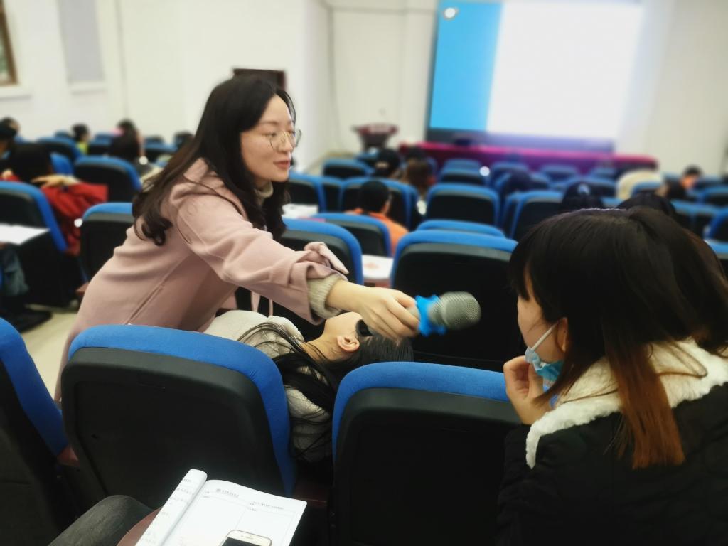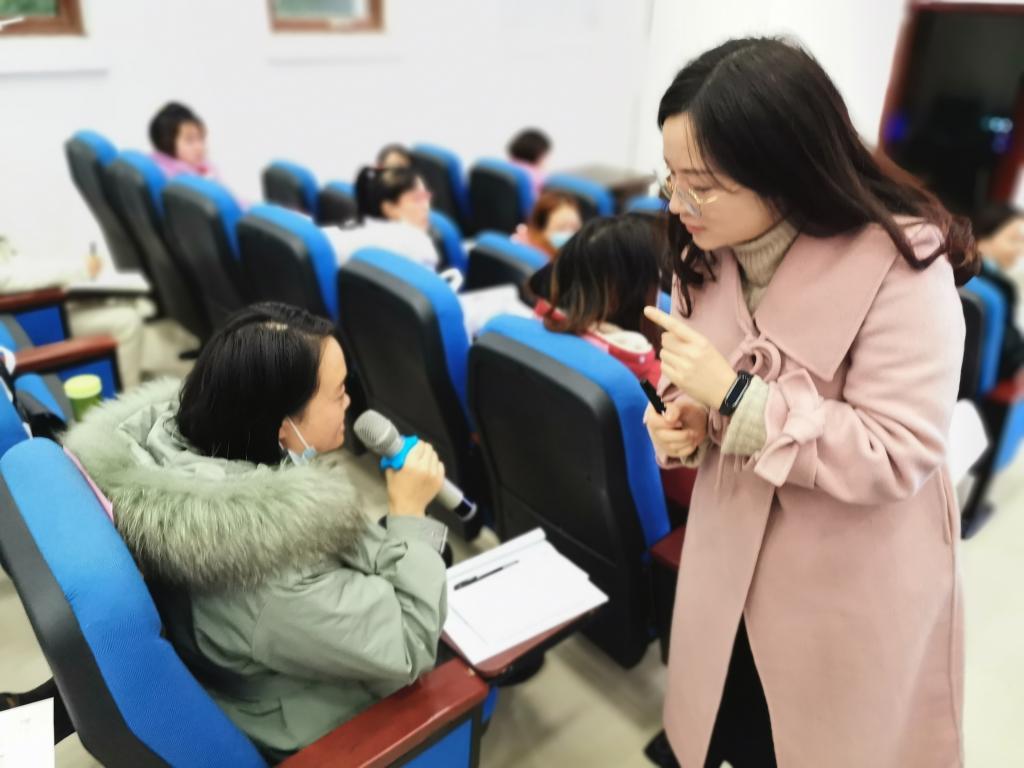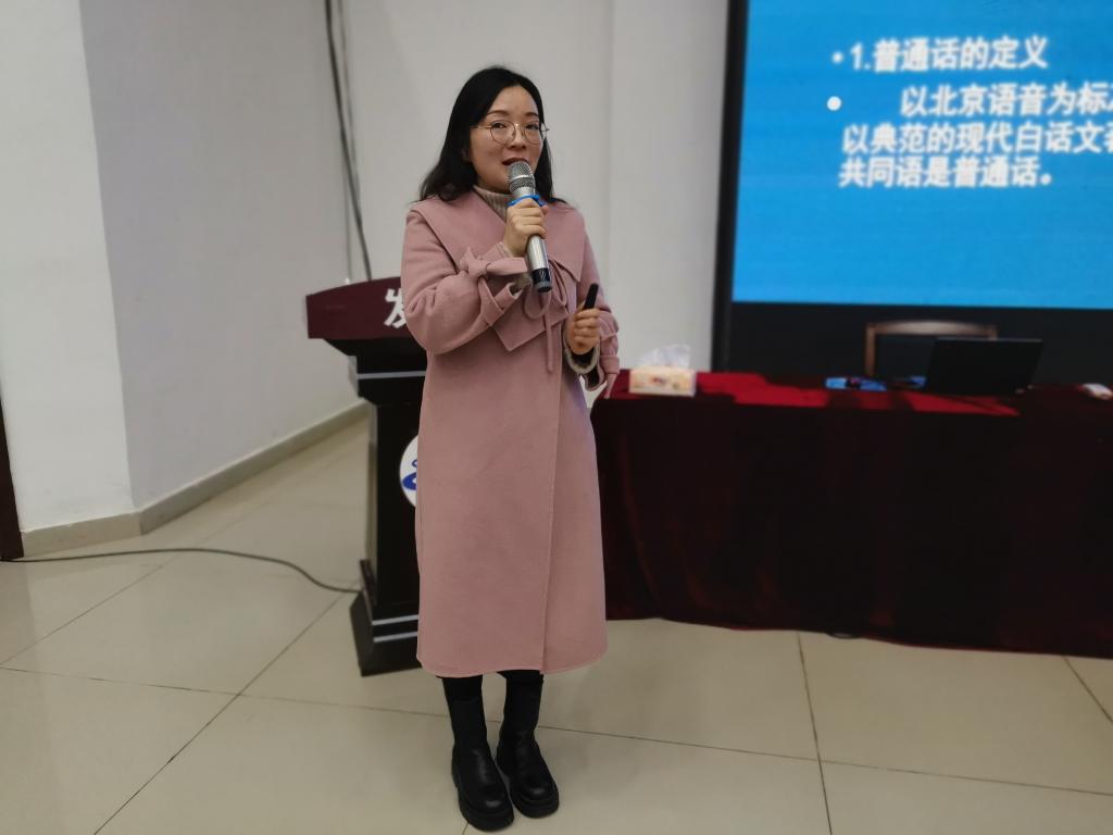 《家园共育,幼儿园一日生活普通话规范用语》讲座,围绕着普通话基本训练、幼儿园推普策略及家园共育推普的方式方法等三方面开展培训。杨梦琪老师以普通话正音训练为基础,面向全体,针对个别,找出学员的发音问题并予以纠正;在此基础上展示不同地区、层次幼儿园的推普活动,为北川县幼儿园的推普活动提供参考素材;最后,从家园共育的角度,为学员们提供了与家长沟通的合理策略,以更好地联合家长推广普通话。