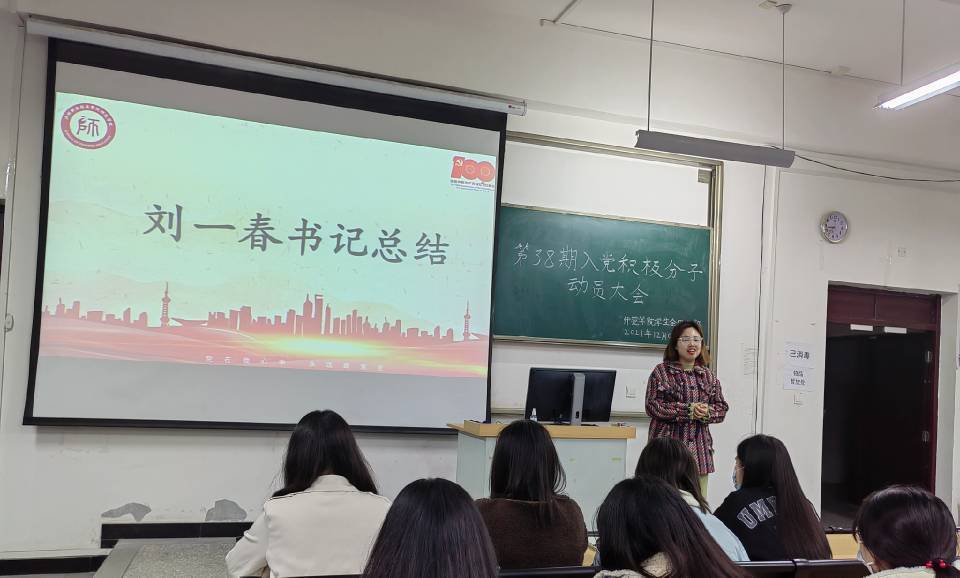 随后,第38期入党积极分子代表丁梦玲进行发言,她呼吁各积极分子积极向党组织靠拢,不断提升自我,坚守信仰。最后,刘一春书记进行总结发言。她阐述了党员发展步骤以及预备党员的教育考察和转正,并表达了自己对同学们的殷切期盼,希望全体学员顺利通过党校培训,争取早日加入中国共产党。