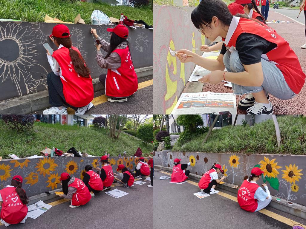 随着一道道朝气蓬勃的身影穿梭在校园中,活动正式拉开序幕。大家早早来到了指定位置,清扫花坛,领取颜料与画笔,调制颜色……他们或弓着身、或蹲在花坛旁认真地绘制图案、填涂颜色,烈日炎炎也丝毫不挡同学们为校园添风采的热情。经过同学们的精巧构思和巧妙绘制,一幅幅主题鲜明、色彩和谐、独具匠心的作品呈现在眼前,花坛顿时变得鲜活起来。他们用自己手中的画笔表达了校园的热爱、宣传了社会主义核心价值观、环保等理念,为公司增添了一道亮丽的风景线,也让校园的每一处都成为了一部无声的教科书。