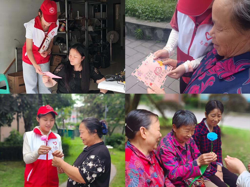 活动当天,志愿者们分工合作,各司其职。“语众不同”志愿服务队向长桥社区的居民讲解了母亲节相关知识,并教授贺卡制作,引导居民敢于表达自己对母亲真挚的爱。“画意未来”志愿服务队通过邀请云台社区居民共同制作手工花、书写祝福卡并赠送给母亲的方式,让居民在感受美、创造美、分享美的过程中,关注亲情,感恩母爱的伟大。活动最后,志愿者们以饱满的精神状态积极投身于社区卫生整治活动。