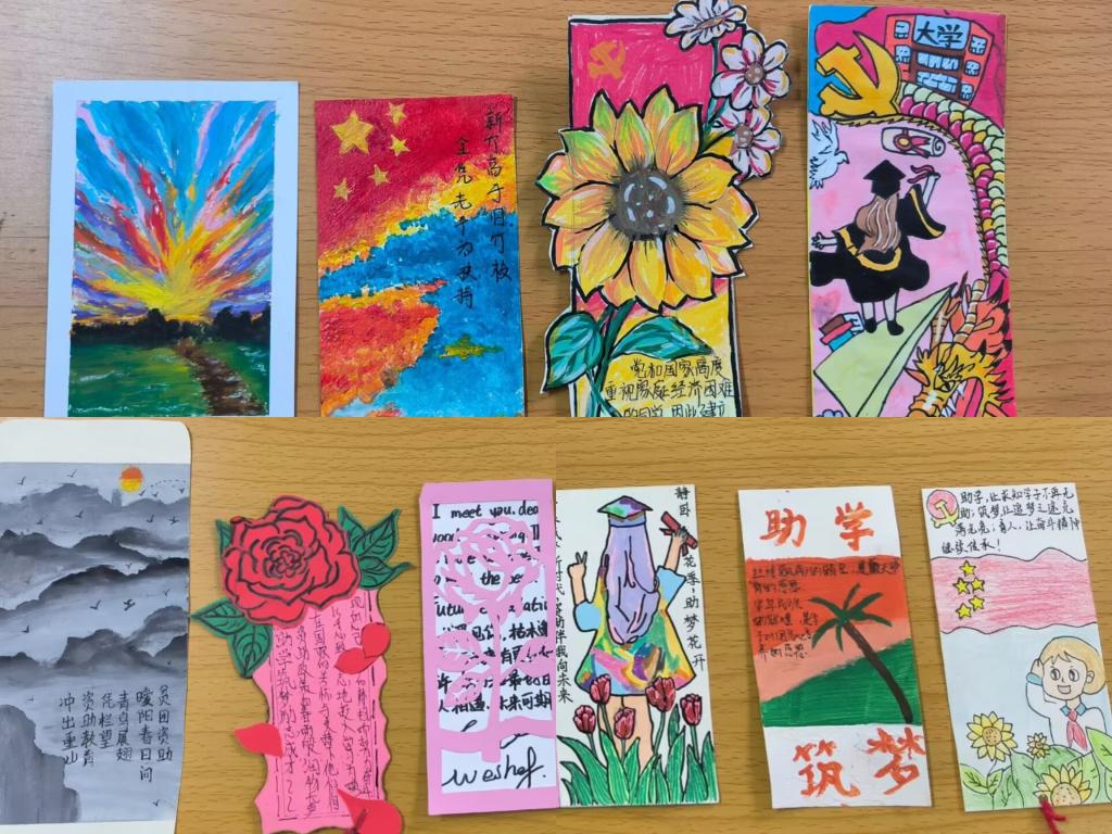 本次活动旨在让同学们在书签制作的过程中,深入了解国家资助政策,感受国家对于教育事业的大力支持,进而培养同学们的德学修养和感恩意识,实现资助与育人相结合的目的。