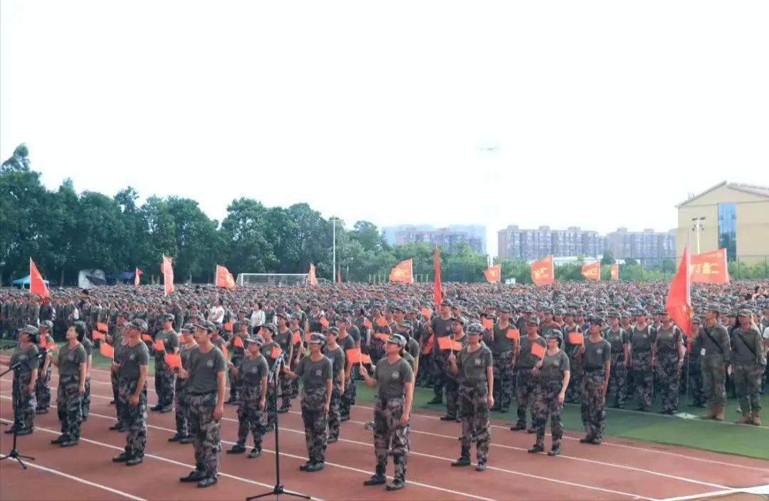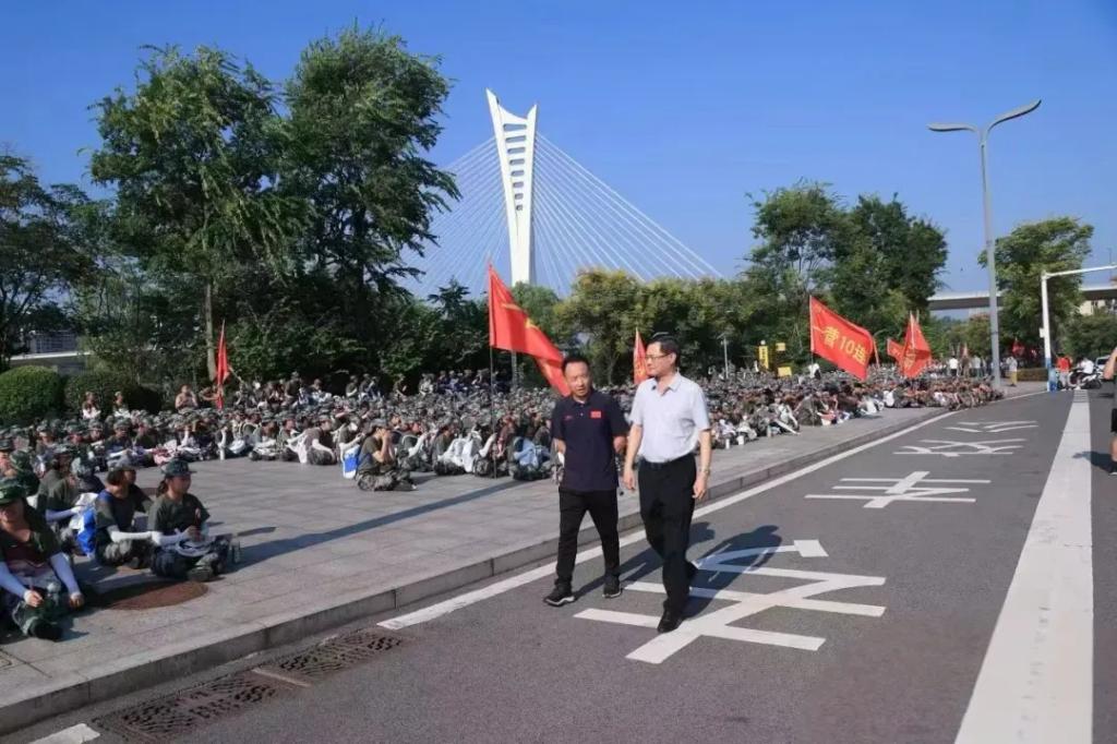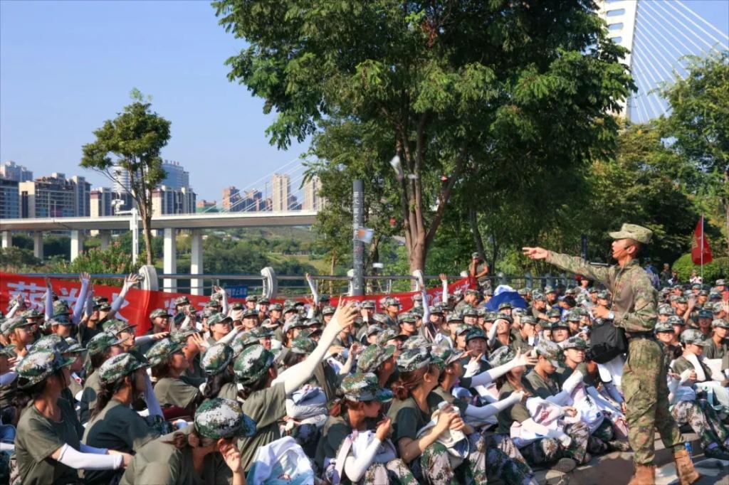 正值公司开展全国第40个教师节系列活动之际,全体新生在出发前齐声高唱《感恩的心》,以最诚挚的歌声向全体教师献上最美好的祝愿。教官引领全体新生激情高呼“请党放心、强国有我”,尽显同心向党之坚定信念与矢志报国之满腔热忱。