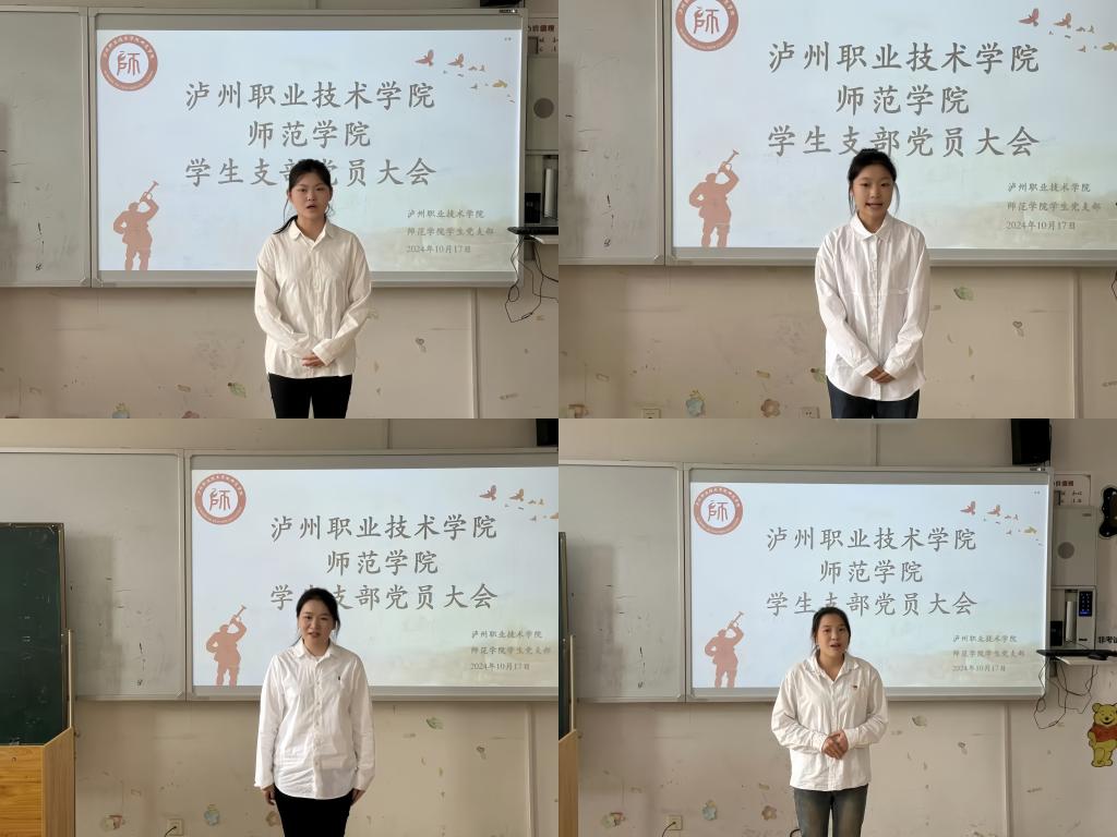 本次大会对杨阳、蒋晓玲等8名发展对象的转预备事宜进行了深入研讨。会上,8位发展对象分别从自身的学习、生活以及思想等方面,详细汇报了在发展考察期间的表现,充分展现出他们在追随党的道路上的坚定信念。随后,党员推荐老师针对各自培养的对象在考察期内的表现进行总结评价,并对是否同意其转为预备党员发表了意见。此次会议采用当场投票并即时宣布结果的方式进行表决。
