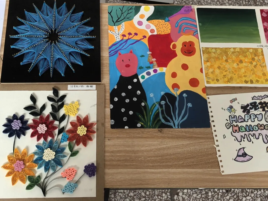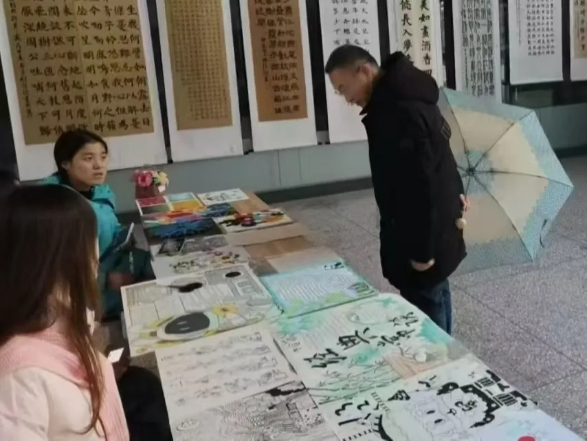 活动期间,同学们积极参与,充分发挥专业特色,精心准备书法、绘画和各类手工作品。这些作品经评选后,在弘仁楼一楼大厅进行展出。活动现场,各类作品琳琅满目,令人目不暇接。书法作品以其行云流水般的笔触,展现出同学们扎实的书法功底和对传统文化的热爱;绘画作品则以其色彩斑斓的画面,充满创意与想象力,让人眼前一亮;手工作品更是独具匠心,从精致的剪纸到栩栩如生的手工艺品,每一件作品都蕴含着同学们的智慧与耐心,展现师范学子深厚扎实的专业技能功底。