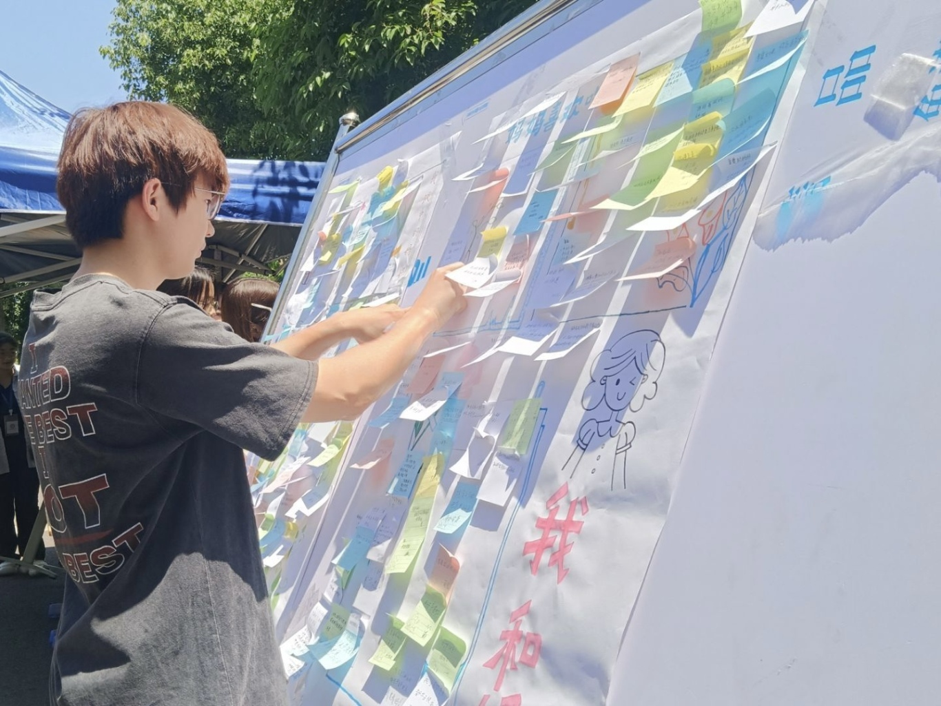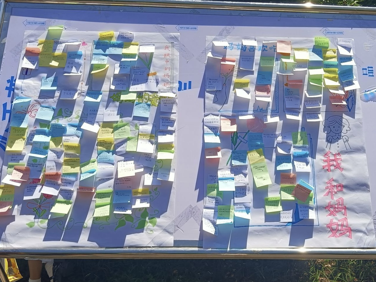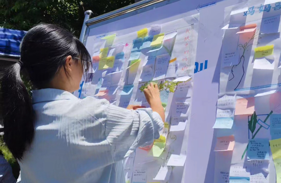 活动现场,同学们热情高涨。在工作人员的引导下,大家有序领取便签和笔,或驻足沉思,或伏案书写,将与母亲相处的温馨瞬间、感恩话语化作文字。一句句真挚的告白、一段段温暖的回忆跃然纸上,承载着同学们对母亲深深的爱与敬意。随着时间推移,展板上的便签逐渐汇聚成一片爱的海洋,温暖而浓厚的感恩氛围在校园中弥漫开来。