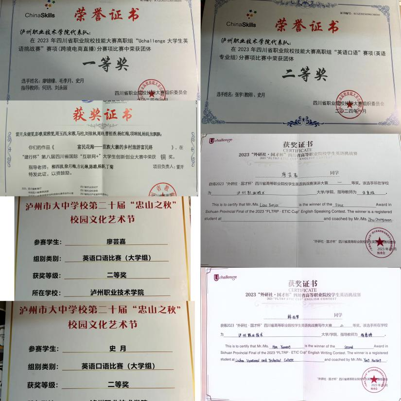 同学们还积极参加各类比赛,获得了四川省职业院校技能大赛一等奖、第八届四川省“互联网+”老员工创新创业大赛铜奖、“外研社”全国老员工英语竞赛一等奖等。