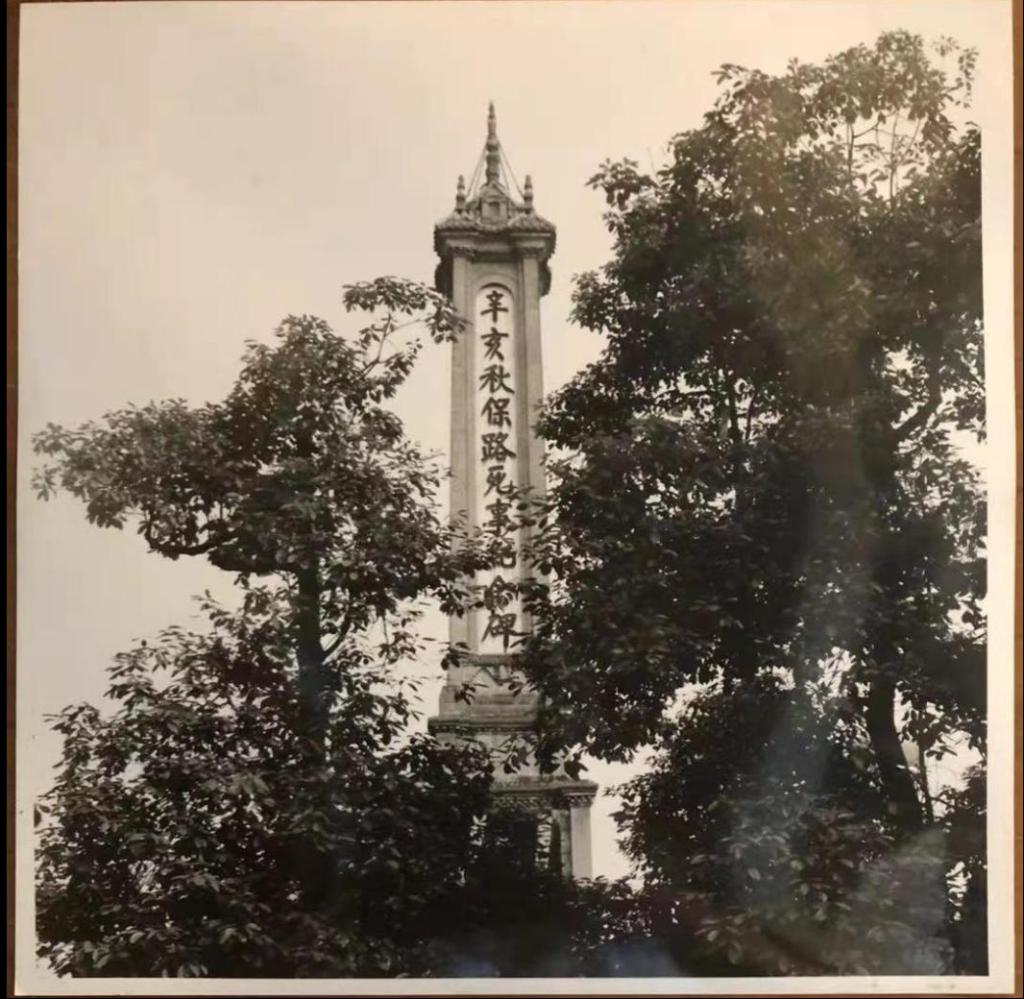 ▲成都少城公园(今人民公园)建立“辛亥秋保路死事纪念碑”(赵熙题)